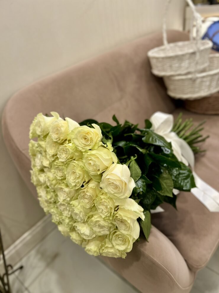 Букет з білих троянд , висота троянди 70 см. в букеті 39 шт.